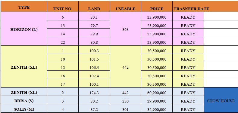 หมายเหตุ : ค่าส่วนกลาง 65 บาท/ตร.ว/เดือน